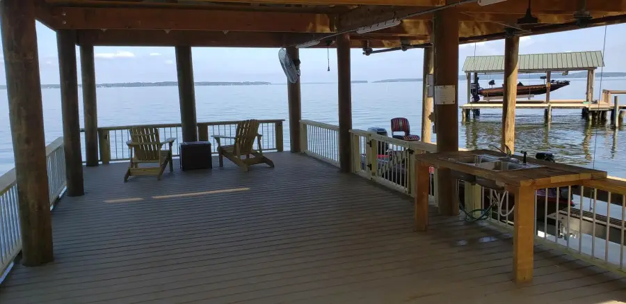 Our over-the-water boathouse is the ultimate spot to soak in the stunning 3-mile sunset views that Tiny Toledo is famous for. With a comfortable gathering area and seating, it's the perfect place to unwind and enjoy the tranquility of the lake. The boathouse also includes a boat slip with an electric lift for easy boat storage.