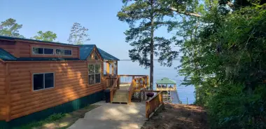 Tiny Toledo is a 1-bedroom 1-bathroom cabin with a loft and a boathouse on the Toledo Bend lakefront. Six people can sleep in this cabin thanks to the three beds.